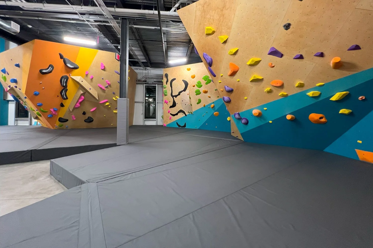 At Revival Climbing Coalition, we offer a wide range of both custom and standard-shaped mats to perfectly fit any space. Our proprietary system allows us to create extremely large covers at an affordable price. One of the key advantages of our mats is that they have fewer velcro connectors compared to our competitors. Additionally, their design enables easy and cost-effective replacement of soft spots, ensuring your mats perform flawlessly over time. This not only keeps upfront costs low but also provides long-term savings. We challenge you to find another option that can match the value and finish of our grid system.